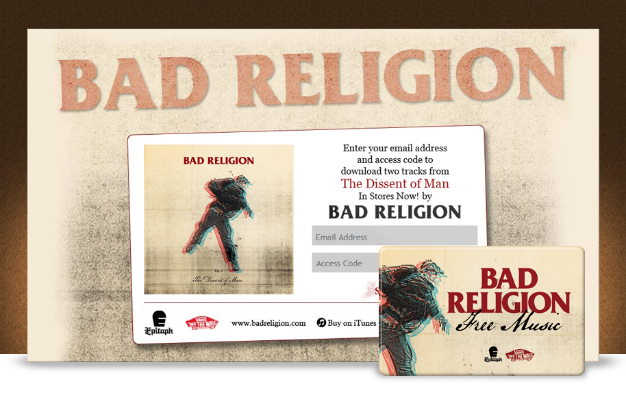 In an excellent example of how brands and bands can help each other, the well-known sneaker brand Vans partnered up with well-known band Bad Religion for an in-store gift-with-purchase to promote the band’s album "The Dissent of Man." When customers purchased a qualifying item at Footaction stores, they were given a free download of 3 of the album’s tracks. By incorporating a custom landing page, Vans and Bad Religion were able to request email address to initiate downloading. The collected email addresses utilized via Bad Religion’s mailing list to notify users when the album dropped.